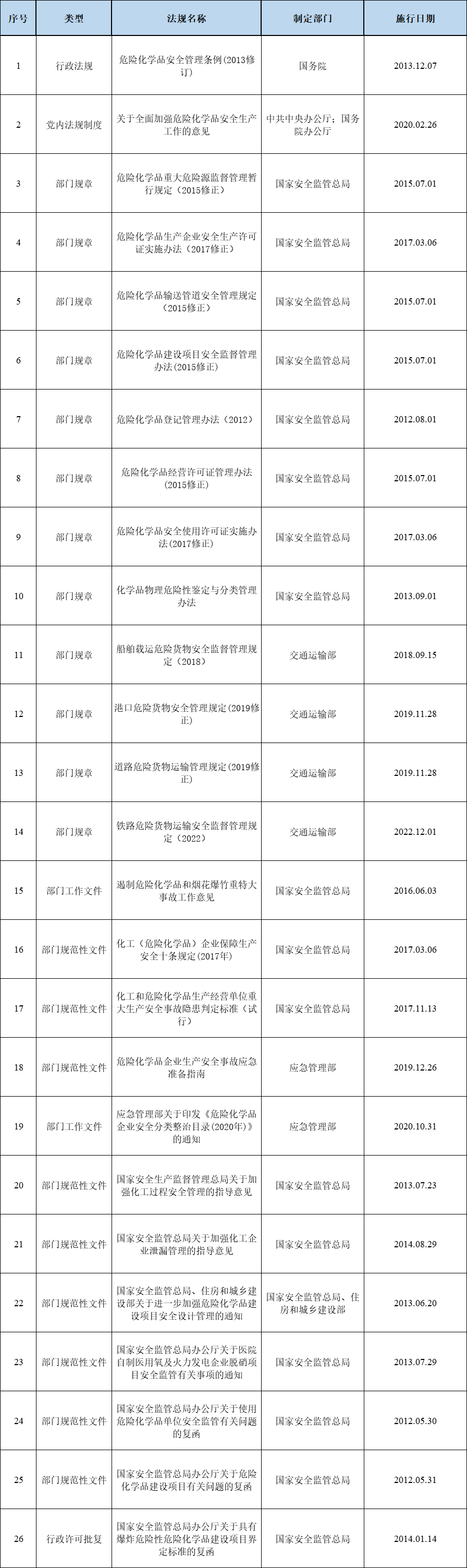 以下对化工企业重点适用的化学品安全领域的法规规范进行总结: